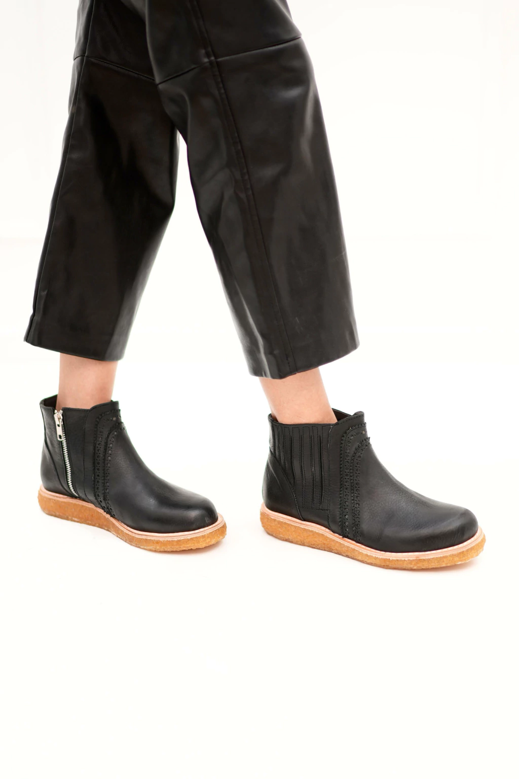 La base de crepe de 3 cm proporciona excelente absorción de impacto y comodidad, mientras que la caña de 11 cm y el cierre lateral aseguran un calce preciso, práctico y moderno. Su horma normal permite un ajuste natural al pie, garantizando confort durante todo el día.