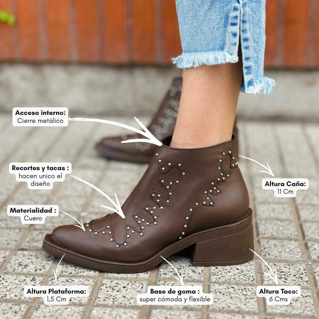 La bota Denisse en color chocolate combina elegancia y carácter en un diseño con inspiración western moderna.