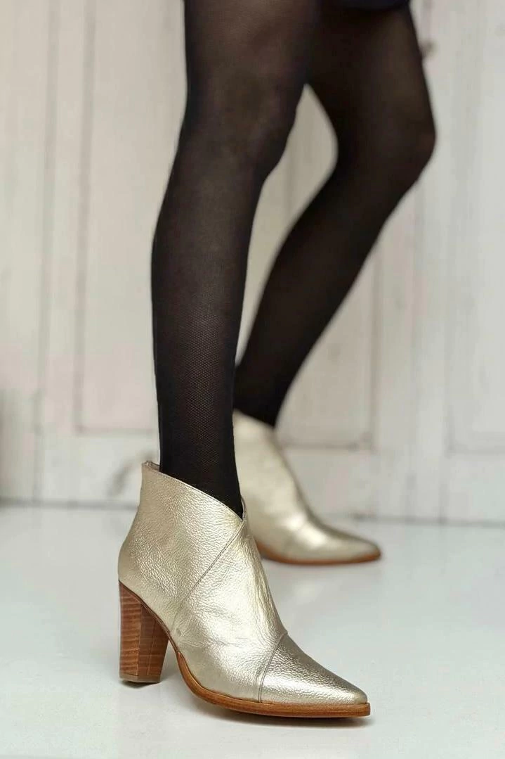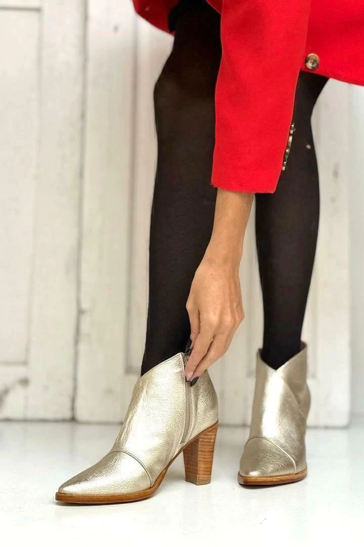 Descubre la sofisticación y el estilo moderno con las Botas Elvira Platino. Estas botas de caña baja, confeccionadas en cuero de alta calidad, son el complemento perfecto para realzar cualquier look. Su color metalizado aporta un toque de elegancia vanguardista que no pasará desapercibido.