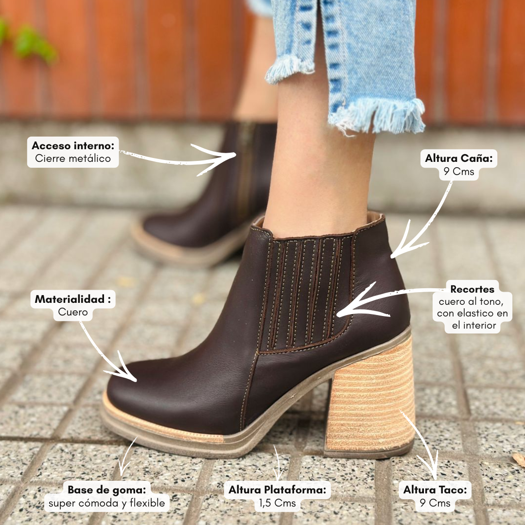 Confeccionada en cuero genuino de acabado liso, su diseño limpio y depurado resalta la silueta estilizada y las líneas suaves que la convierten en un básico elevado. El detalle lateral elastizado no solo suma un guiño moderno, sino que brinda un ajuste flexible y súper cómodo que acompaña el movimiento en cada paso.