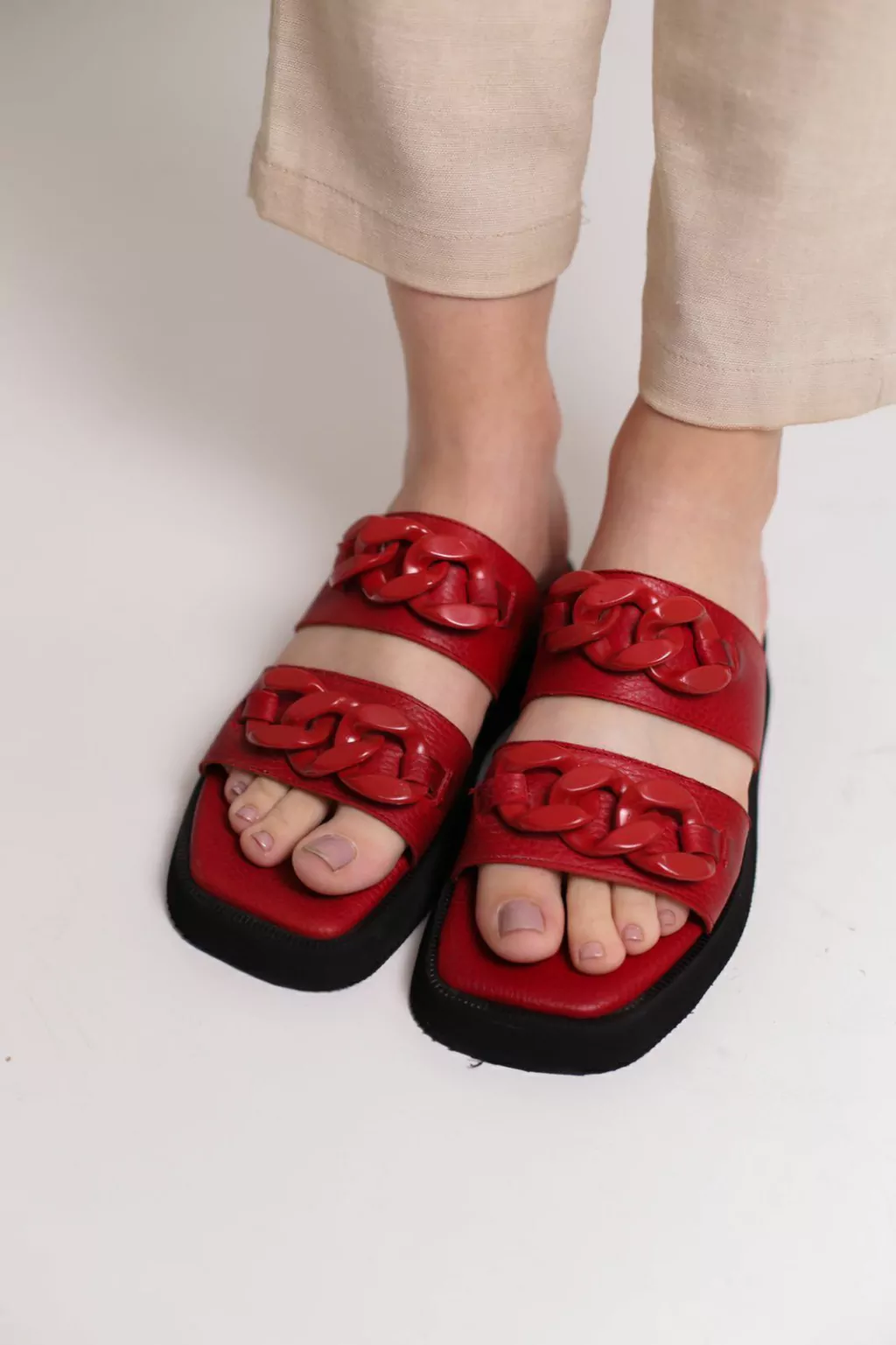 Detalle de doble tiras anchas con detalles de cadenas de carey a tono.