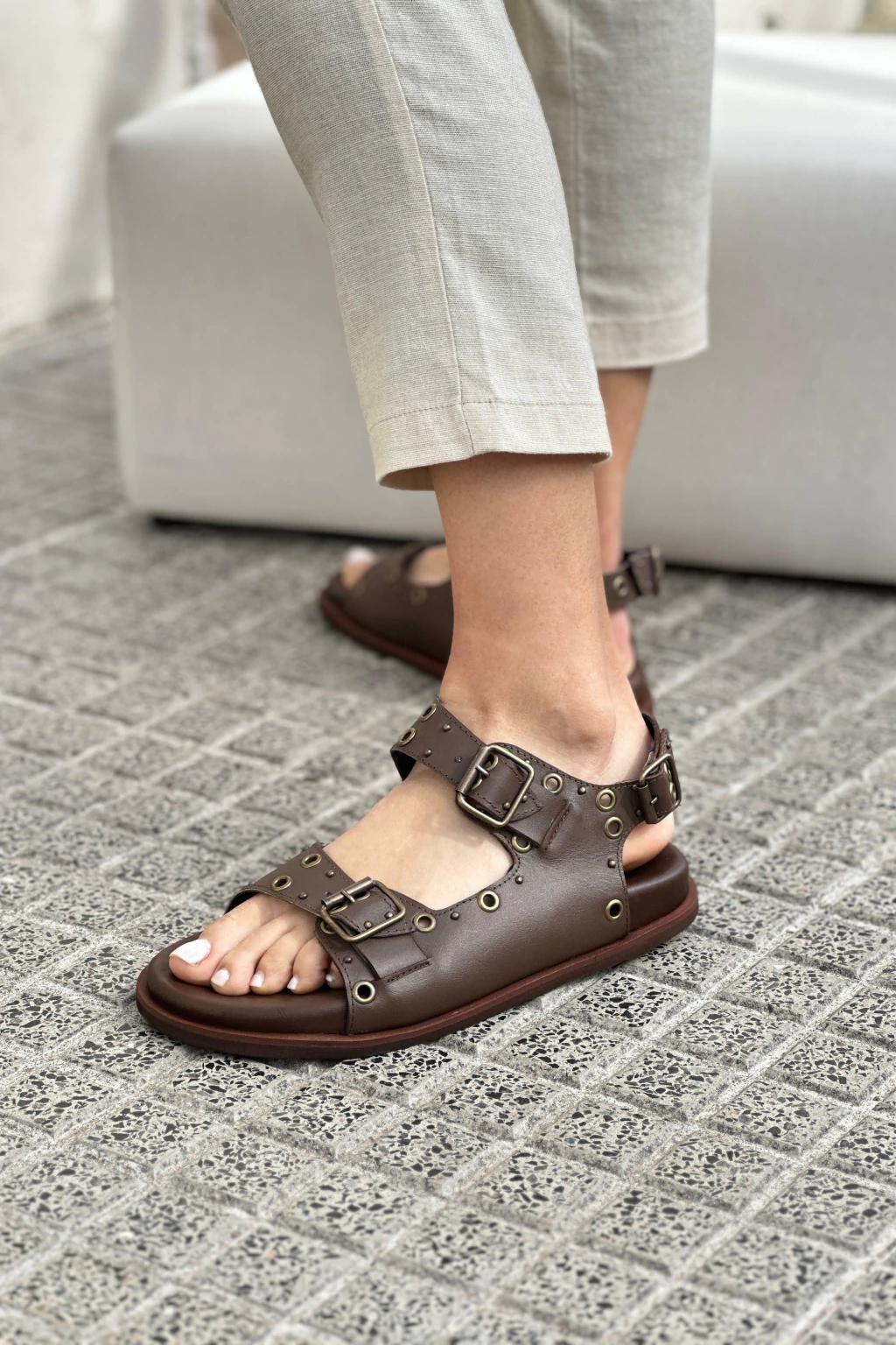 El cuero genuino no solo aporta un acabado refinado, sino también una gran durabilidad y resistencia, asegurando que la Sandalia Milu Chocolate te acompañe temporada tras temporada.