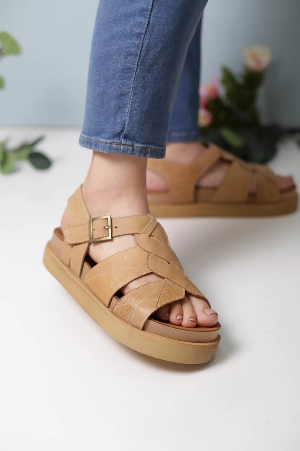 Sandalia 100% cuero. Interior-Exterior.