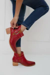 Las Texana Francisca en rojo son el complemento perfecto para darle a tu atuendo un toque de distinción y estilo. Estas elegantes botas de caña baja están confeccionadas en cuero 100% de alta calidad, asegurando durabilidad y confort.