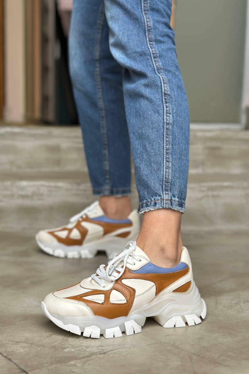 El diseño deportivo combina detalles en cuero con recortes a tono, asegurando un look moderno y versátil que se adapta a cualquier atuendo. La base de 5 cm ofrece una pisada cómoda, mientras que la caña corta de 5 cm proporciona un ajuste seguro sin comprometer la movilidad.